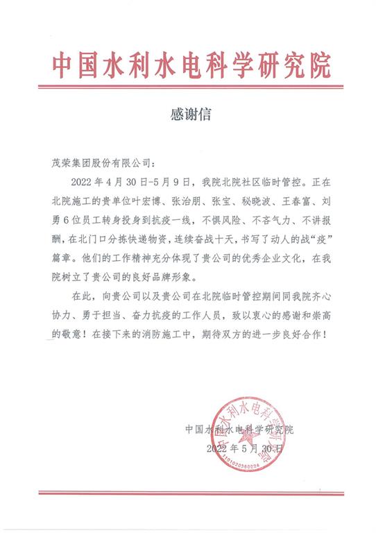 業(yè)務(wù)特訊/一封來(lái)自中國(guó)水利水電科學(xué)研究院的感謝信